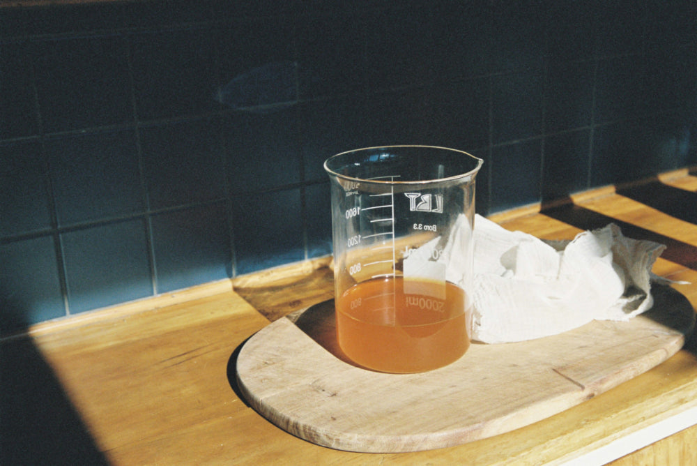 Cover the jar with an airlock lid and leave to ferment. This should take a week or so, you will start to see bubbles forming on the surface - this means that indicates the yeasts are at work and it is on its way to becoming alcohol. At this point, it passes through and is metabolised into acetic acid, aka vinegar.