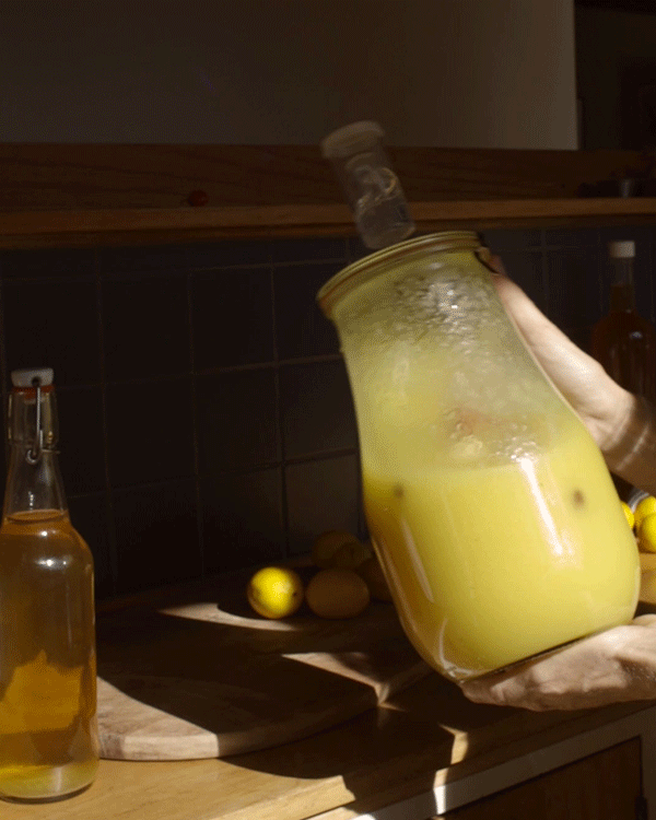 接下来的一周,每隔一天检查一下醋,并充分搅拌,因为醋已经分离了。现在应该已经开始冒泡了。